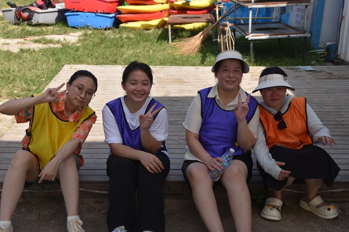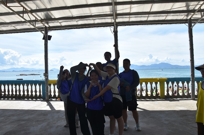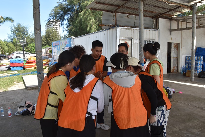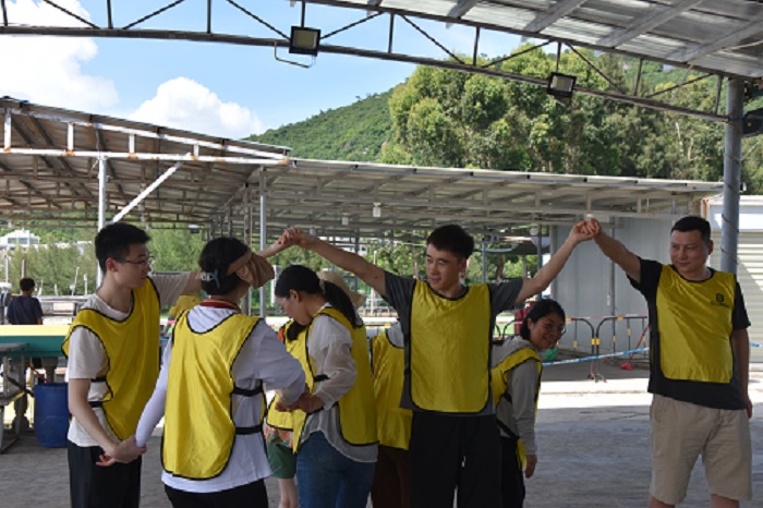 饭后大家聚集在巽寮湾拓展基地里进行趣味团建游戏。