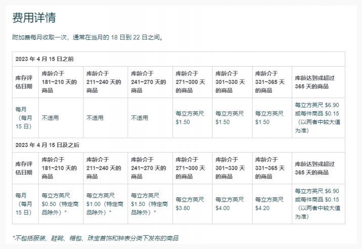 4月15日将更新新的超龄库存附加费,原来是超过271天即九个月的库存开始收取库存费。