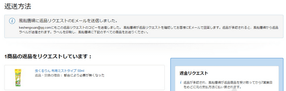 6、选择退货的处理方式,选择【返金】之后,点击【返品リクエストを送信】然后提交退货申请。