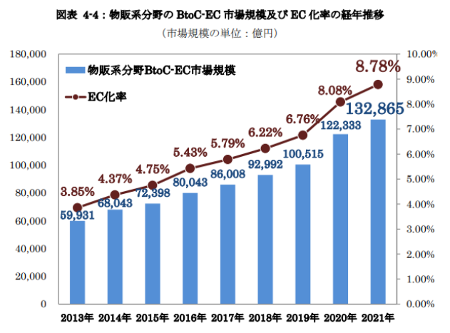 在2020年时,日本EC市场规模就已高达19万2,780亿日元。日本电商化进程增长迅速,已是全球第四大电商市场。