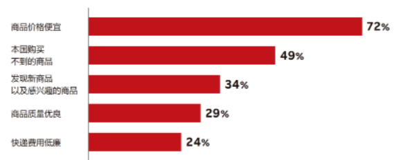 日本用户使用跨境电商的主要原因为:商品价格便宜、本地购买不到商品、商品质量优良以及快递费用低廉等。