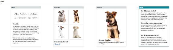亚马逊品牌故事直接出现在列表页面中间的传统A+ 内容描述上方,并且可以应用于你品牌下的所有 ASIN。有4 个不同模块的自定义布局来展示你的品牌故事,截图如下: