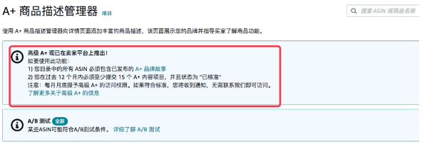 最最最重要的是最近亚马逊卖家热议的高级 A+ 现已在卖家平台上推出!这个高级 A+可以放置视频。但是这个高级 A+就要求目录中的所有 ASIN 必须包含已发布的 A+ 品牌故事。所以要想做高级 A+就尽快去做品牌故事吧。
