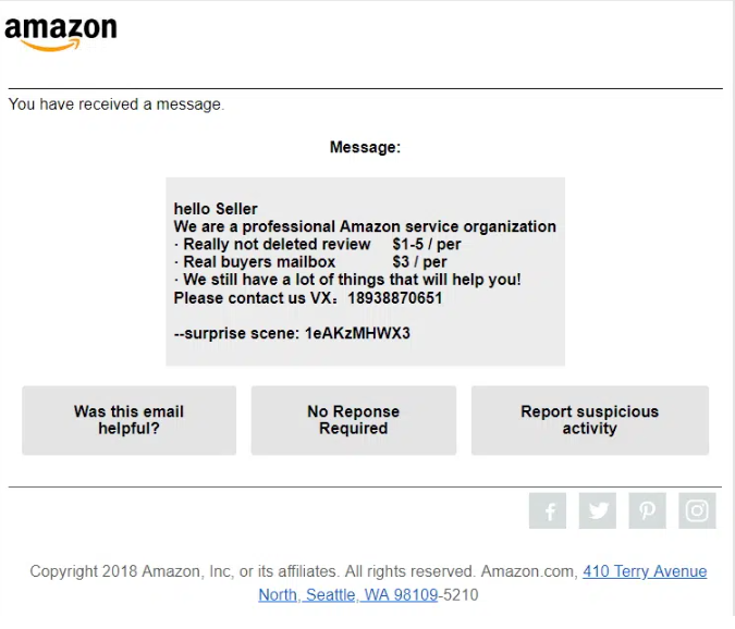 众所周知,亚马逊客户评论是影响客户在亚马逊上做出购买决定的最重要因素之一。对于卖家来说,优质的评论等于销售额。因此,有些卖家采用了违反亚马逊的服务条款的手段来制造虚假评论。这些卖家的评论策略可以采用以下两种方式之一:一种是补偿/报销真实顾客以获得积极的评论,另一种更极端的方法是通过僵尸亚马逊账户制造虚假订单并留下积极的评论。这两种获得评论的做法在2018和2019年很常见。