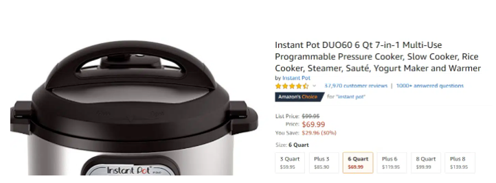 在亚马逊上,一件商品可能有多种变体。例如,一件衬衫可能有几种不同的颜色,或者 Instant Pot 可能有不同的尺寸。