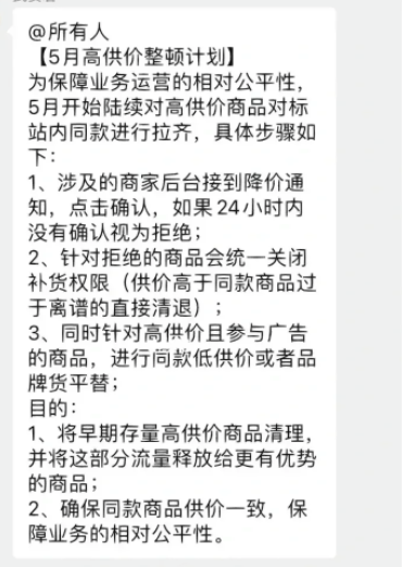 “天天喊我们备大货,一备过去就压价,申报价格要求低于批发价,平台所有费用狂涨,供货价却一压再压。”