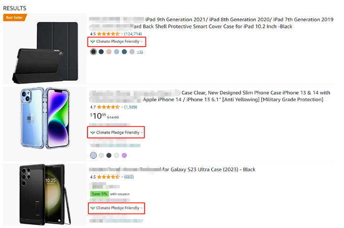 为了帮助买家更方便地发现和购买气候友好承诺认证的产品,亚马逊平台已将认证产品标明在搜索结果和产品页面中,并出现在专门的区域中。