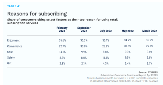 PYMNTS的报告显示,“Enjoyment(享受)”和“Convenience(便利)”是用户选择订阅服务的重要原因。同时,有14.1%的人也非常在乎“Cost(价格)”,尤其是17%的Z世代在选择订阅服务时注重价格优惠。