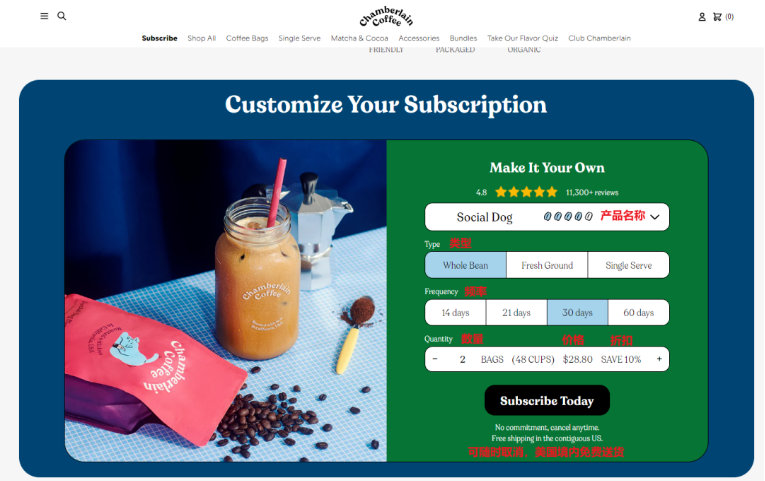 Shoptop所分享过的很多行业的品牌都使用了订阅制,例如专门贩卖丑蔬果的美国品牌Misfits Market、美国领先的宠物电商品牌Barkbox、专做大码女装的品牌Dia&Co、专注男性健康护理的DTC品牌Hims、国产咖啡出海品牌三顿半、网红DTC咖啡品牌Chamberlain Coffee以及YOTO儿童智能音箱等。
