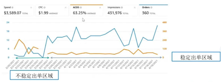 所以,一款产品出单稳定后基本上已经处于老品期了,简单可以总结为,该产品在广告推广后,由之前断断续续出单,到最近7天内广告推广下单量波动程度低于30%或者稳定增长。
