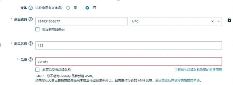 亚马逊近年来正在逐步强化卖家的品牌意识,以期望卖家能够在亚马逊提供更高品质的产品,寻求长期经营,不少卖家也开始意识到品牌的重要性,不仅仅是对自己的产品多一重保护,也可以更加便捷的使用平台的各种品牌功能。前几年有不少新卖家刚刚进入亚马逊的时候,由于想降低前期的成本支出,选择暂时不注册品牌,使用品牌白名单上传产品,所谓的白名单可以让许多没有做品牌备案的卖家,在新建listing的时候摆脱无品牌无法上传的问题,解决填写N/A或是无品牌时候出现亚马逊5461或5665错误代码不知道如何解决办法。