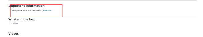 在产品详情页产品描述上方的位置,新增了一个“Important information”(重要信息)的栏目。而这个重要信息,竟然是“举报这个产品”。