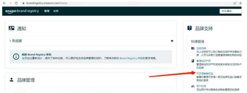 2.然后再进入被授权账号(B账号)的品牌管理页面,(这个要等一会才有这个可获得权益的)