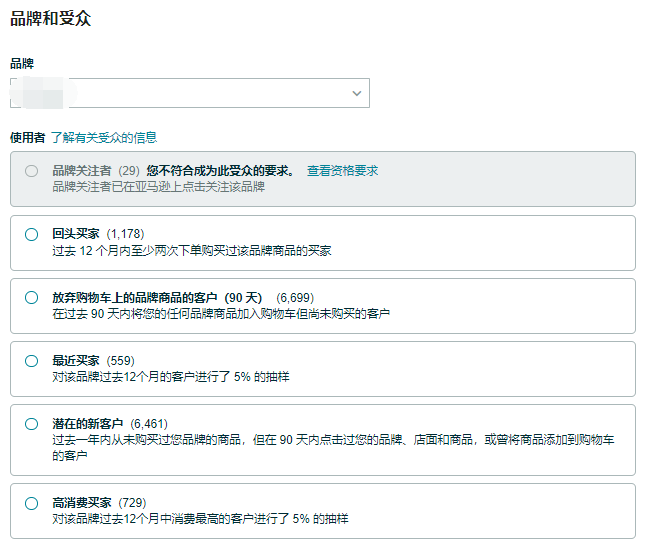 每个促销可以从复购买家、潜在新买家、高消费买家、近期购买过商品的买家、品牌关注者中受众数大于100的任意选择一个。