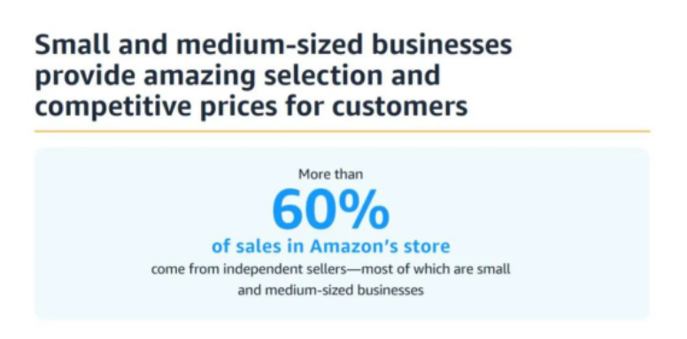 要知道第三方卖家对于亚马逊来说是非常重要的。在今年五月份发布的《2022年小企业权赋》报告中显示,亚马逊平台上超过60%的销售额来自于第三方卖家,其中大部分由中小型企业组成,所以一旦没了第三方卖家,亚马逊就是在自寻死路。