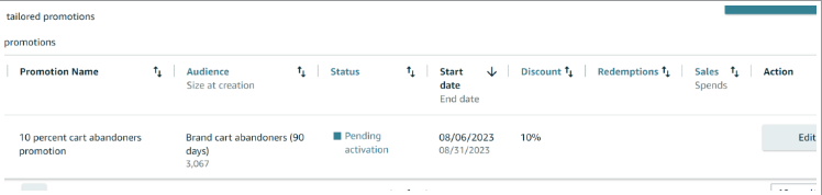 点击提交后,亚马逊还需要 24-48 小时来审核。返回此页面查看活动是否已获得批准,然后在启动后查看其活动进行概况。