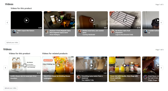 另外,有部分卖家反应亚马逊最近正在更新关联视频的板块,有部分类目在特定时间段内可以看见“Videos for this product”和“Videos for related products”这两个板块被分开放。