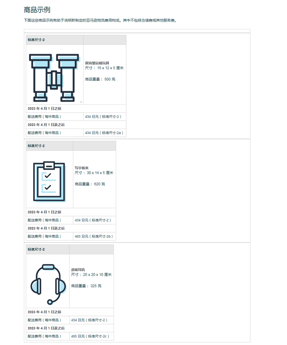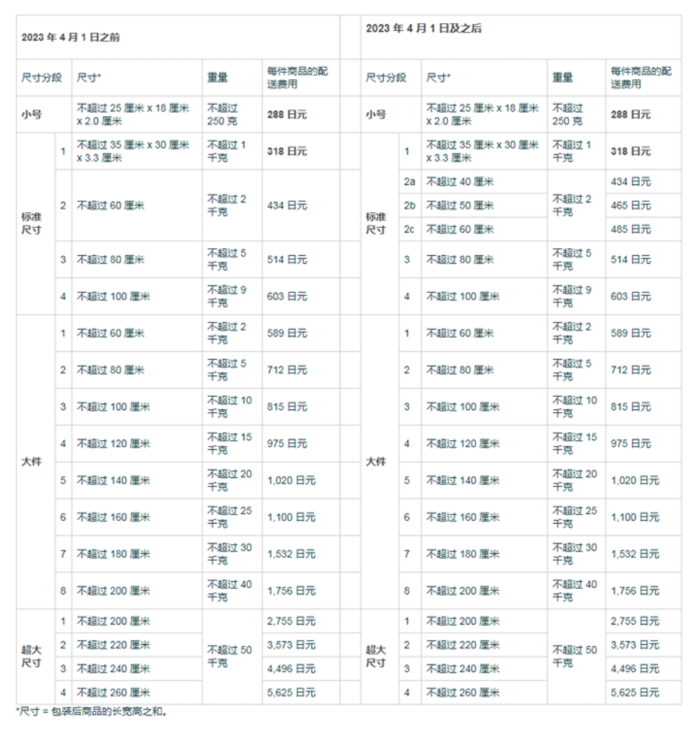 2023年亚马逊日本站物流配送费用变更(4 月 1 日生效)