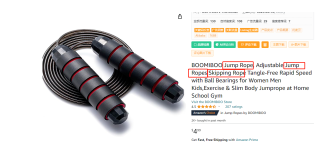 该产品的Jump Rope,Jump Ropes,Skipping Rope 都是比较核心的关键词。