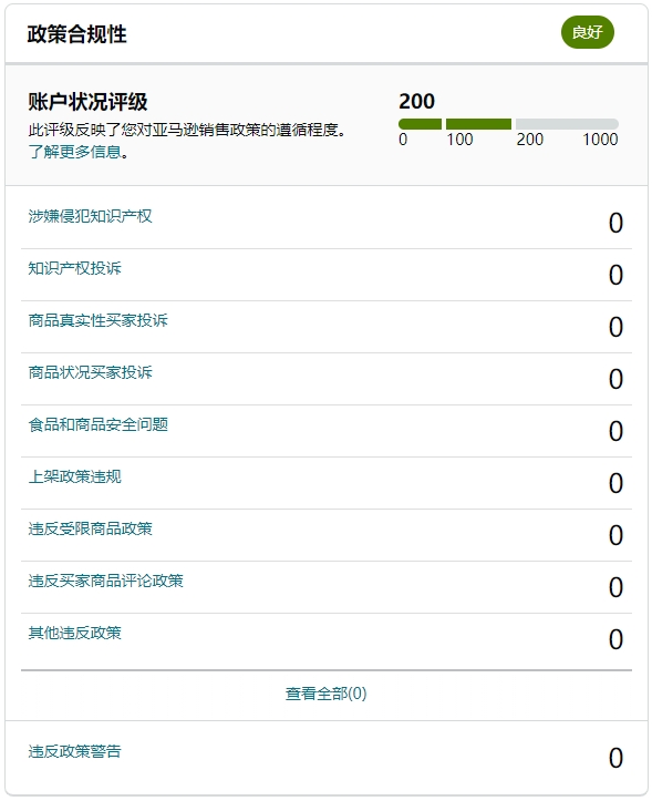 所以卖家们在近期一定要避免做风险操作,务必合规运营!每天及时查看绩效通知,关注“账户状况”的“政策合规性”板块,确认账户状况评级情况,查看是否有停用风险,若出"黄色"和"红色"风险警告,一定要妥善处理违规问题。