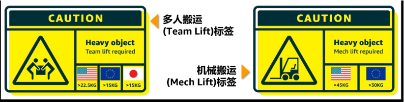 ③超重标签:“Team Lift”和“Mech Lift”标签需要彩色打印,且每边不小于8cm。